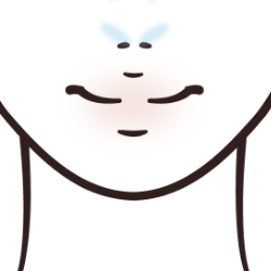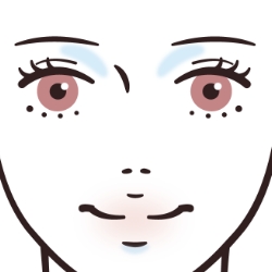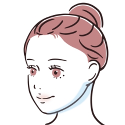 4色すべて混ぜてフェイスラインとあご下の首部分に入れる。(フェイスラインとあご下の首部分に同じ幅で入れるのがポイント)