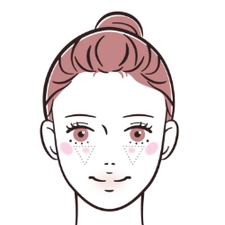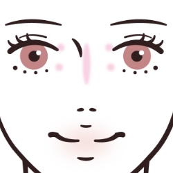 目頭の上下と鼻筋の中心に入れる。